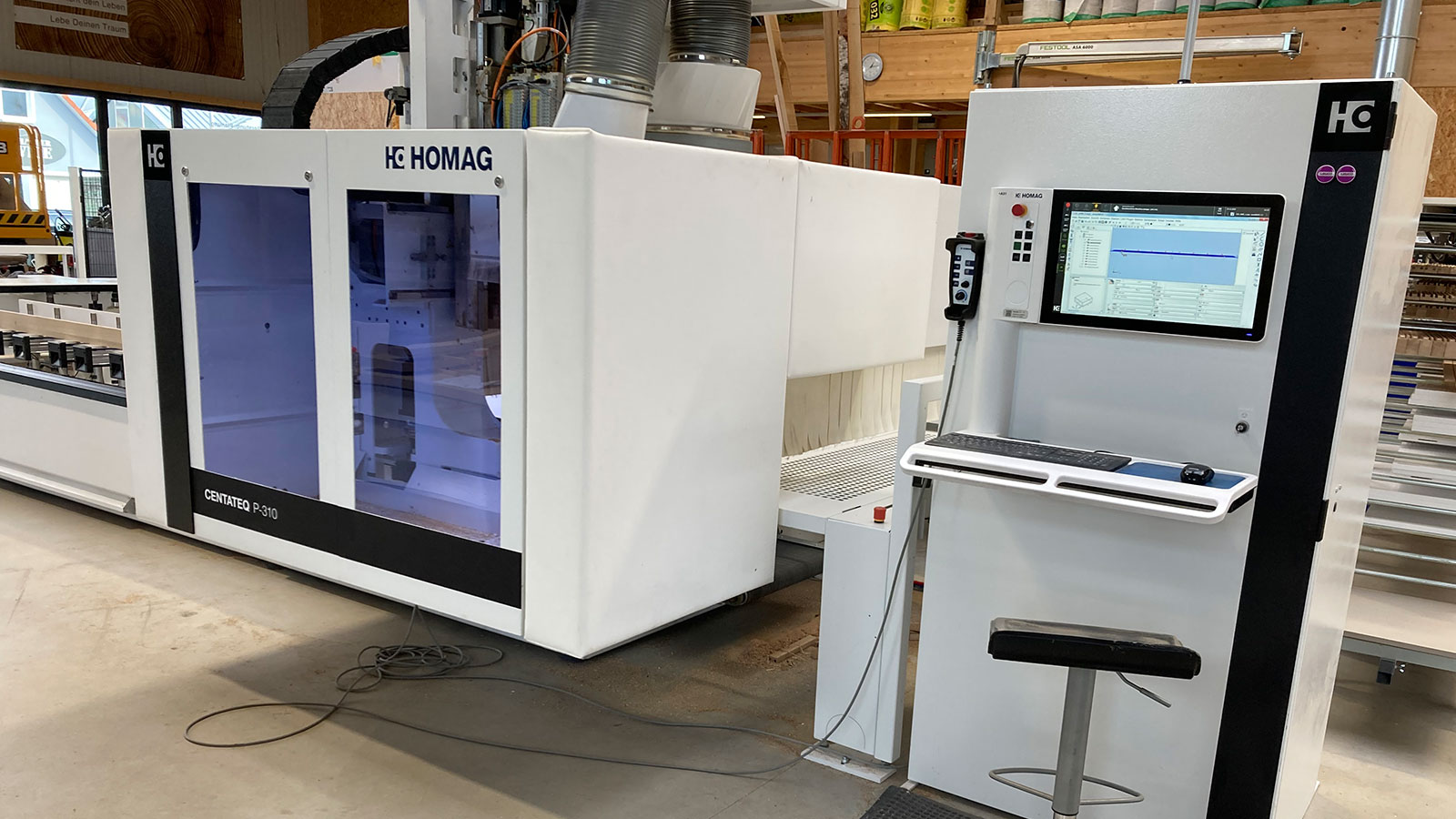 Zum Aufteilen der Werkstücke hat er eine Plattensäge HPP 130 (jetzt SAWTEQ S-100) der einstmaligen HOMAG-Marke Holzma angeschafft. Sie ist seit 2015 regelmäßig im Einsatz und liefert immer noch genauste Schnitte. Die Kantenbearbeitung findet über eine KDF 440 C (jetzt EDGETEQ S-300) aus dem Hause Brandt, ebenfalls eine ehemalige Marke unter dem HOMAG-Dach statt. Individuelle Fräsarbeiten werden auf dem erst 2019 angeschafften HOMAG CNC-Bearbeitungszentrum CENTATEQ P-310 durchgeführt.