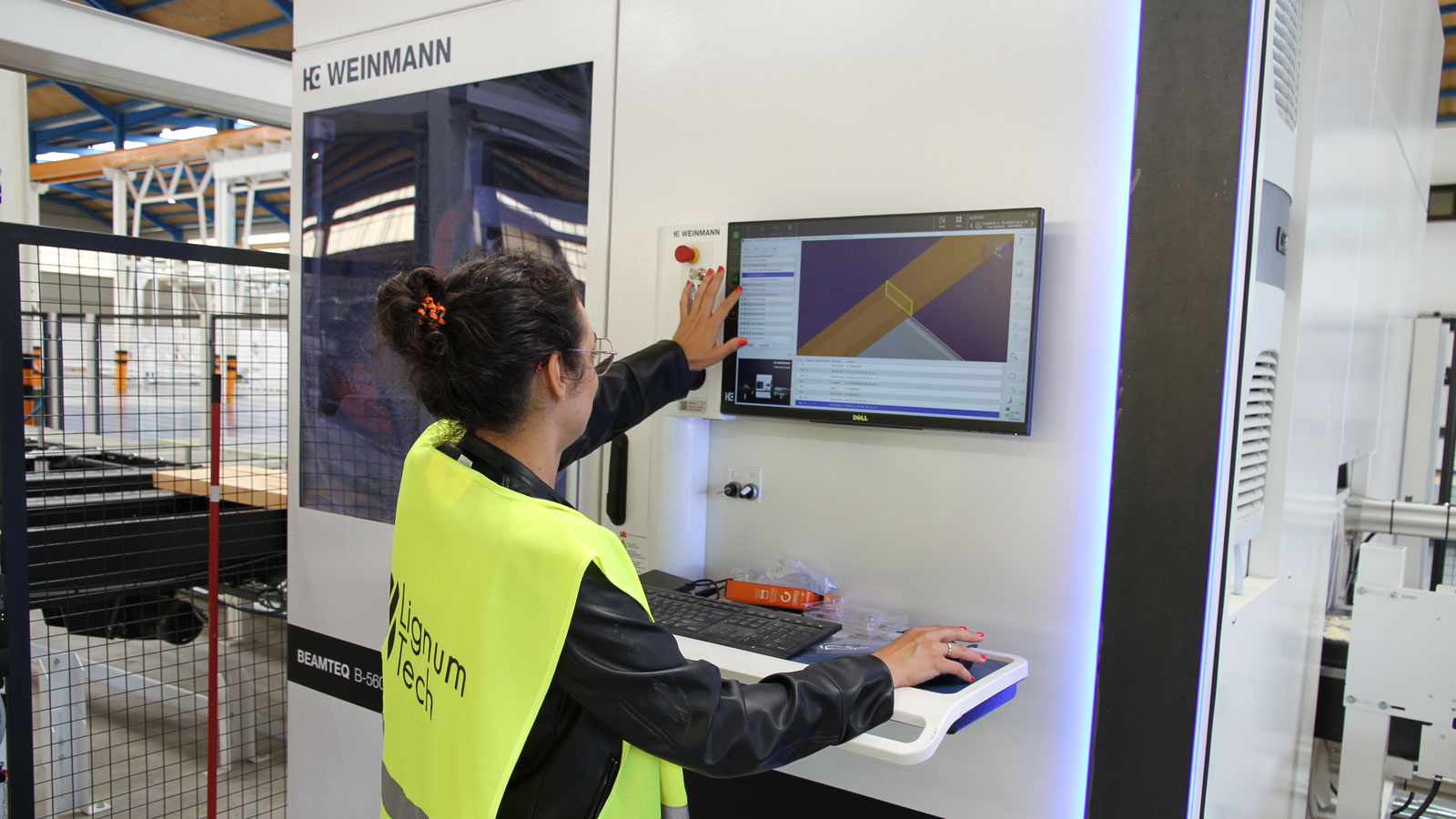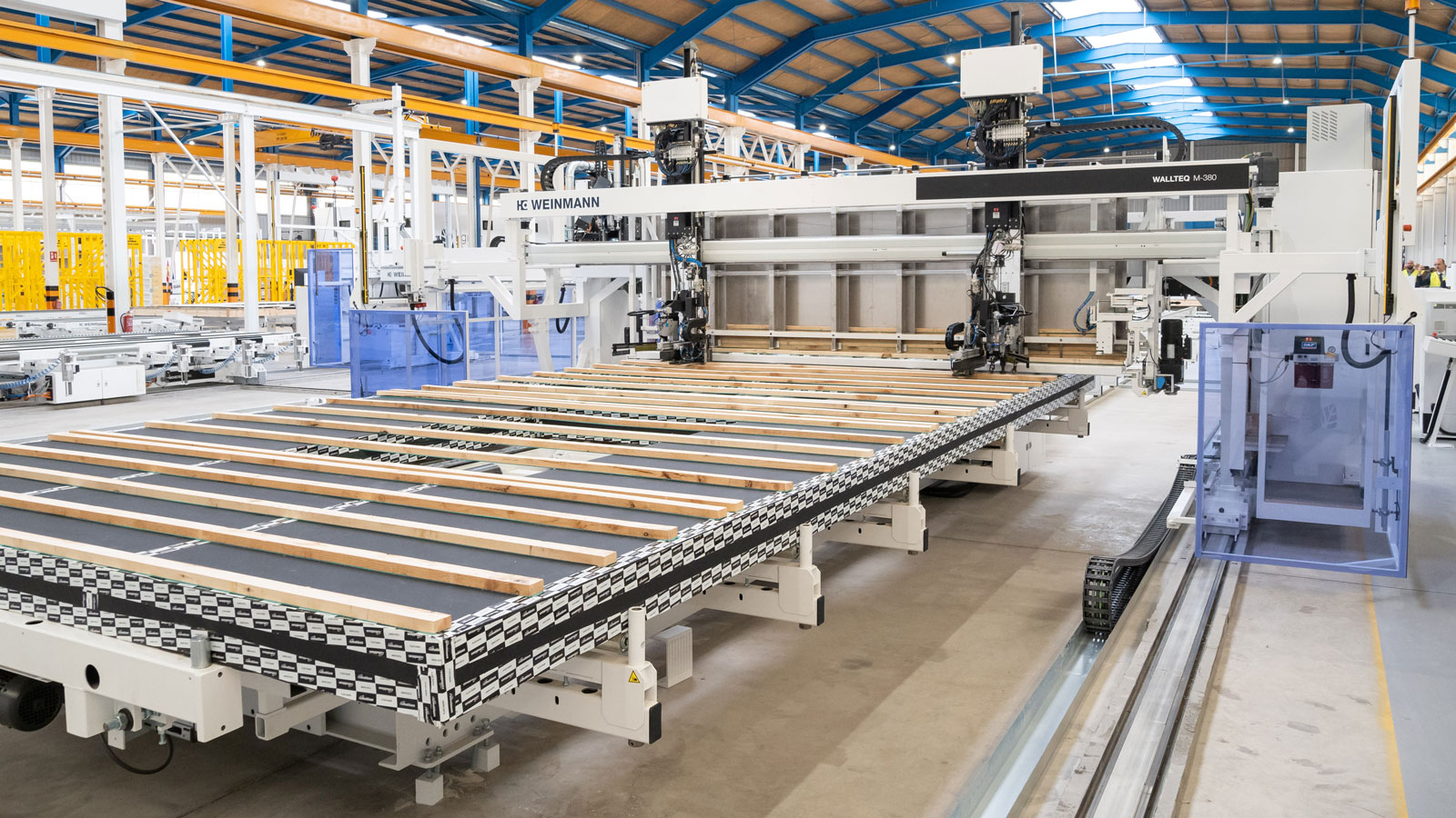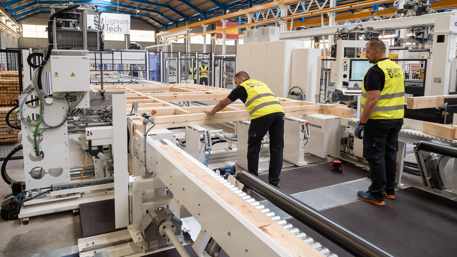 LIGNUM TECH hat eine in Europa einzigartige Produktionsstätte mit einer Fläche von etwa 10.000 Quadratmetern, die vollständig automatisiert und roboterbetrieben ist, geschaffen. Hier werden industrialisierte Fassaden mit einer selbsttragenden Laricio-Kiefernholzstruktur hergestellt, die sich durch ihre strukturelle Verwendung in Wohnhochhäusern auszeichnen. Der Produktionslinie werden Holz und andere Materialien zugeführt, woraus ein Endprodukt, bereit für den Einsatz auf der Baustelle, entsteht. Die Investition in eine HOMAG/WEINMANN Produktionslinie umfasst numerisch gesteuerte Zuschnittzentren, Riegelwerkstationen mit automatischer Verschraubung, Roboterzellen, Multifunktionsbrücken sowie verschiedene Elemente der innerbetrieblichen Werkslogistik. Die spanische und europäische Bauindustrie verlangt nach Produkten, Bausystemen und technischen Spezifikationen von höchster Qualität sowie nach der Möglichkeit, Projekte und Großserien individuell zu gestalten. Durch die Verbesserung der Produktivität und Durchlaufzeiten ist es möglich, den Preis auf das Niveau der traditionellen Bauweisen zu bringen. WEINMANN und HOMAG haben ihre Kräfte gebündelt und eine auf die Bedürfnisse von LIGNUM TECH zugeschnittene Lösung mit den modernsten Maschinen- und Softwaretechnologien entwickelt, um den Erwartungen des Kunden und des Marktes gerecht zu werden. Dabei wurden die Bedürfnisse von LIGNUM TECH im Bereich der Maschinenspezifikationen und Technologien professionell analysiert und während der Konzeption der kompletten Produktionslinie ein sehr enger Kontakt zum Kunden gepflegt. All das hat dazu geführt, dass sich WEINMANN und HOMAG als Lösungsanbieter beweisen konnten. Einer der wichtigsten Vorteile der neuen Produktionsstätte besteht unter anderem in der direkten Auswirkung auf die Sicherheit und Gesundheit der Arbeitnehmer, die in einer kontrollierten Umgebung, sich wiederholende Arbeitsschritte ausführen. Weitere Vorteile liegen in der Verbesserung der Genauigkeit und Qualität der Produkte, der Möglichkeit zur Einführung erforderlicher Kontrollen zur Gewährleistung der Einhaltung von Produktnormen und der vollständigen Kontrolle über die Planung und Verschachtelung von Projekten. Des Weiteren wirkt sich die Massenfertigungskapazität auch auf die direkten Kosten und den Ertrag des Produkts aus.