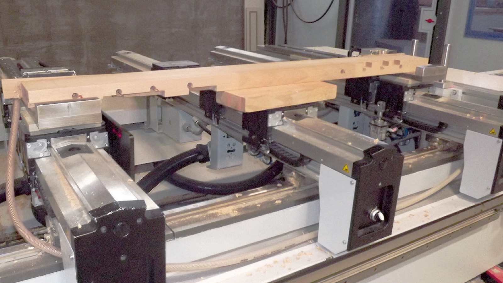 Seit fast 20 Jahren arbeitet die Firma aus Wismar mit dem schwäbischen Maschinenbauer zusammen. „Das klappt immer sehr gut“, freut sich Plath. „Der Service ist in Ordnung und passt zu unseren Anforderungen.“ Darum kam es 2012 zum Erwerb eines Bearbeitungszentrums BMG511, mit dem sich Treppen in allen Varianten fertigen lassen. Die CNC-Maschine verfügt über einen automatischen Tisch mit Klemmelementen zum mechanischen Umspannen der Werkstücke. Der 18-fache Tellerwechsler und der Pick-Up-Platz für die Säge sorgen für einen reibungslosen Produktionsablauf. Eine Spezialität des Hauses Plath sind individuelle Handlaufkrümmlinge. Dank der 5-Achs-Spindel Drive5C+ können sie mit der BMG511 formschöngefertigt werden. „Die Frässpindel bietet eine hohe Zerspanungsleistung und hervorragende Bearbeitungsergebnisse“, hebt Homag-Produktmanager Rempp hervor. Und Plath ergänzt: „Auch das passt perfekt in unsere Arbeitsabläufe.“ Die Technik der BMG511 überzeugt auch weiter: „Das hochsteife, schwingungsabsorbierende Maschinenbett aus Sorb-Tech-Mineralguss sorgt für hohe Oberflächengüte – auch bei schwerer Zerspanung“, so Rempp. Die positiven Folgen sind längere Standzeiten für Werkzeuge und geringere Belastungen für Lager und Antriebe. Der Arbeitsbereich beim Umfräsen liegt für diese Maschine bei 6 175 mm in X und 1 550 mm in Y. Damit das Werkstück sicher bearbeitet werden kann, sorgen Alu-Vakuumspanner mit Reibbelag für sichere Haftung.