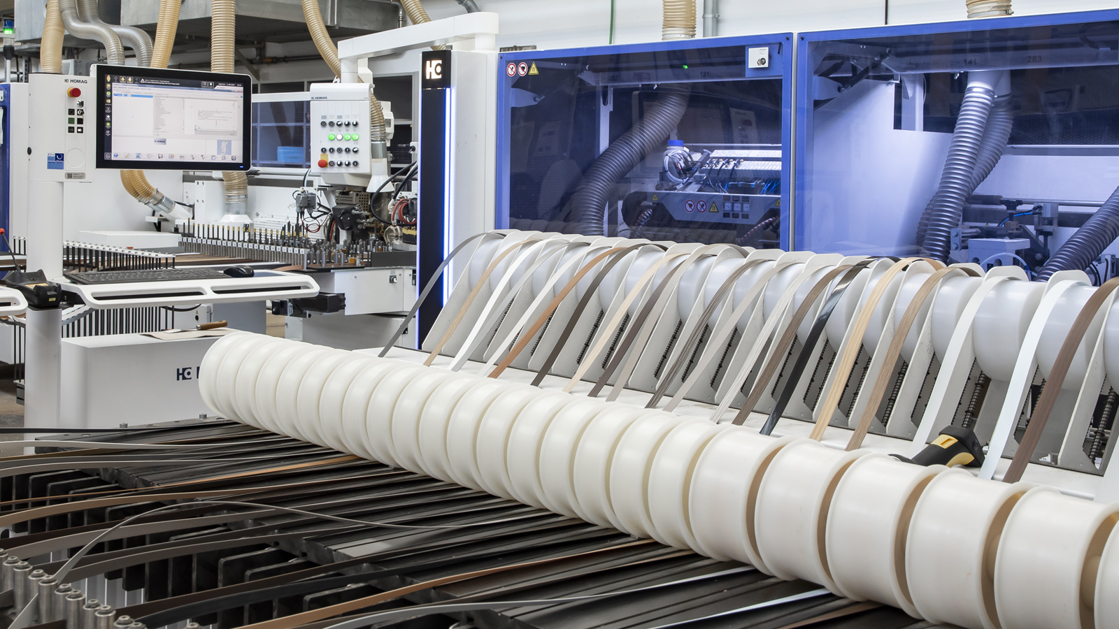 Mit der HOMAG-Linie in Schenkenzell ist Duravit in der Lage, Bauteile in Losgröße 1 wirtschaftlich zu fertigen. Zugleich ist die variable Serienproduktion möglich, sodass der Badmöbelhersteller neue oder auch modifizierte Produktlinien in unterschiedlicher Stückzahl flexibel in die Produktion bringen kann. Innerhalb von 21 Tagen gelangen die Möbel nach Abarbeitung der Aufträge zur Auslieferung. Strenge interne Qualitätskontrollen garantieren eine konstant hohe Produktgüte und erlauben es Duravit, fünf Jahre Garantie auf jedes Badmöbel zu geben. Aber nicht nur das fertige Möbel unterliegt der durchgehenden Prüfung von Qualität und Funktionalität, schon bei seiner Entwicklung durchläuft es umfangreiche Tests. So wird zum Beispiel mit Klimaprüfungen sichergestellt, dass das Möbel auch extremen Anforderungen hinsichtlich Luftfeuchtigkeit und Temperatur genügt. Dass Duravit die Badmöbelproduktion in Schenkenzell nicht zuletzt an aktuellen Standards der Umwelttechnik und Energieeffizienz ausgerichtet hat, zeigt der Einsatz ausschließlich PEFC-zertifizierter Hölzer – bearbeitet auf einer vollverketteten, vernetzten, hochflexiblen Fertigungslinie von HOMAG.