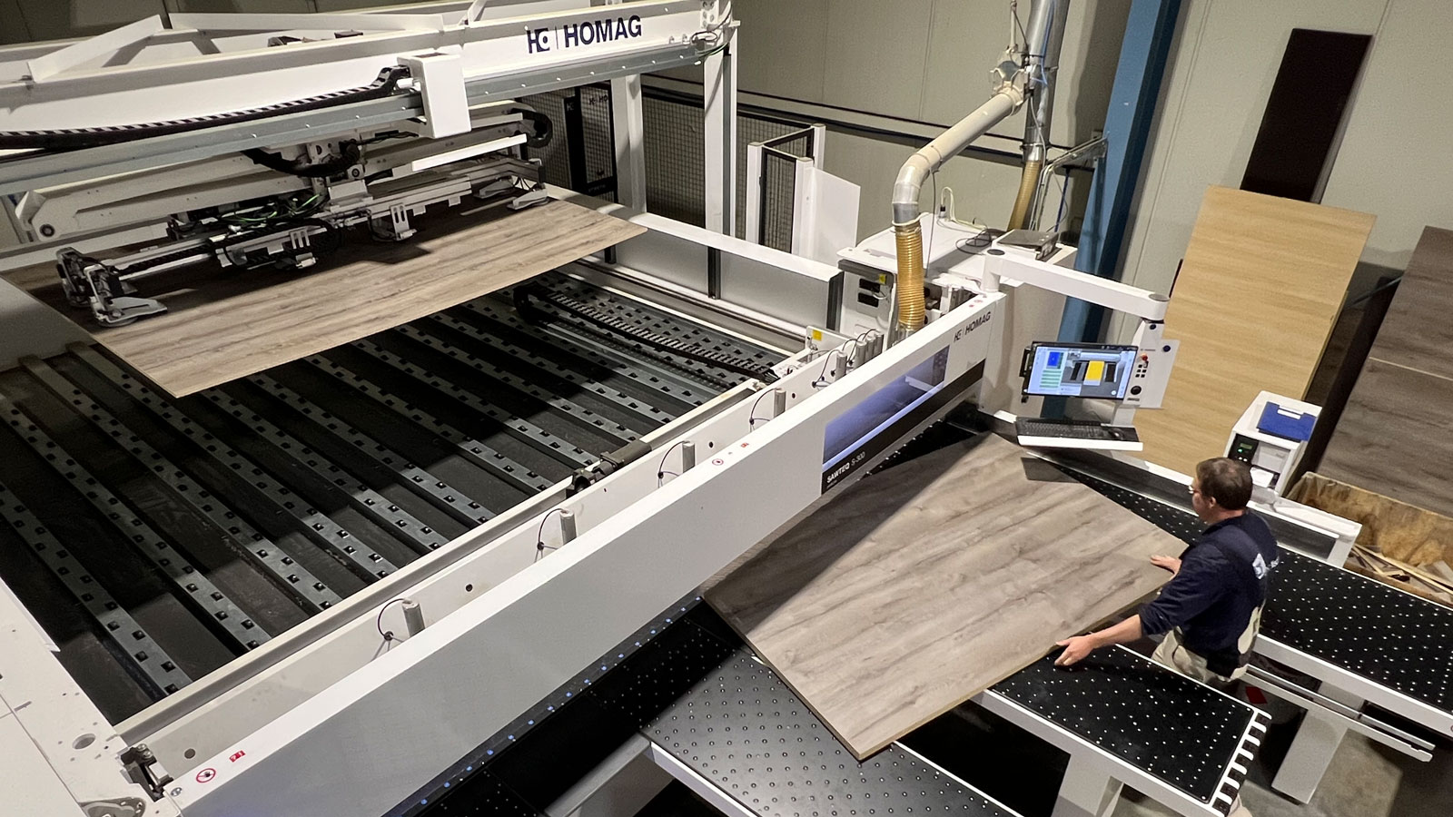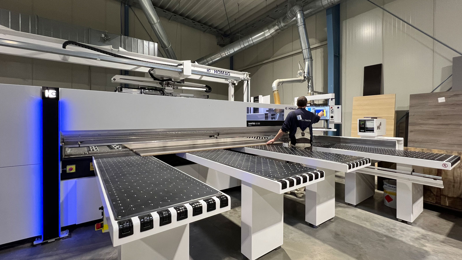 Rainer Volkery hat in seiner Tischlerei die Weichen für die Zukunft gestellt. Mit dem Umzug in eine neue Halle steht nun Raum für Expansion zur Verfügung. Den nutzt er, um technologisch neu durchzustarten. In einem ersten Schritt hat er den Plattenzuschnitt auf neue Beine gestellt. Technologiepartner HOMAG hat dafür eine platzsparende Kombination aus Plattenaufteilsäge und Einachsbeschicker geliefert.
