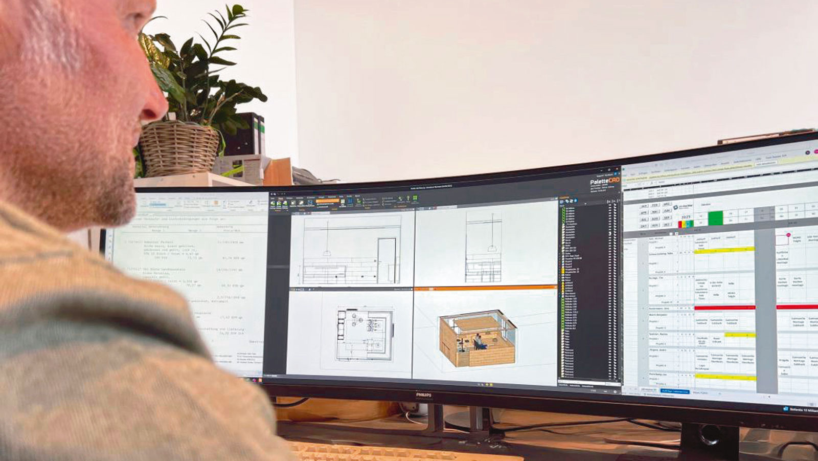 Rainer Volkery setzt in seinem Betrieb auf flache Hierarchien. Hier sprechen alle auf Augenhöhe und wenn Not am Mann ist, kann der Chef alle Maschinen auch selber bedienen. Im Kern beschäftigt sich der Tischlermeister mit der Kundenakquise, dem Entwurf sowie der Planung individueller Möbel und Innenausbauten. In der Arbeitsvorbereitung stehen ihm zwei erfahrene Kollegen zur Seite. Softwareseitig sind Palette CAD sowie die Branchensoftware Pinncalc im Einsatz.