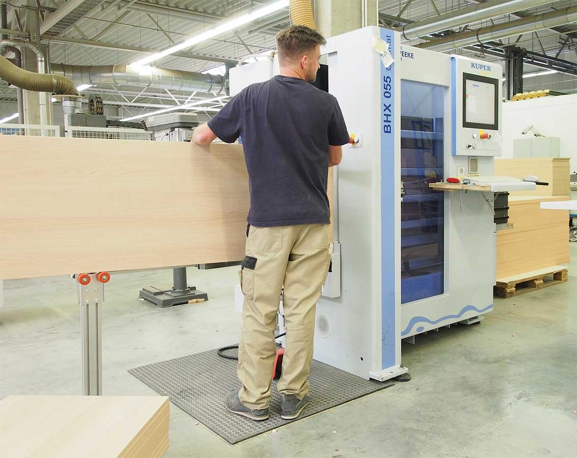 Die Theodor Schönefeldt GmbH hat ihren Plattenzuschnitt auf neue Beine gestellt. Der Fertigungsspezialist setzt auf die bislang nicht gekannte Kombination aus vollautomatischem und manuellem Zuschnitt auf der brandneuen HOMAG Druckbalkensäge SAWTEQ B-300 flexTec. Das steigert die Leistung und beflügelt die Flexibilität.
