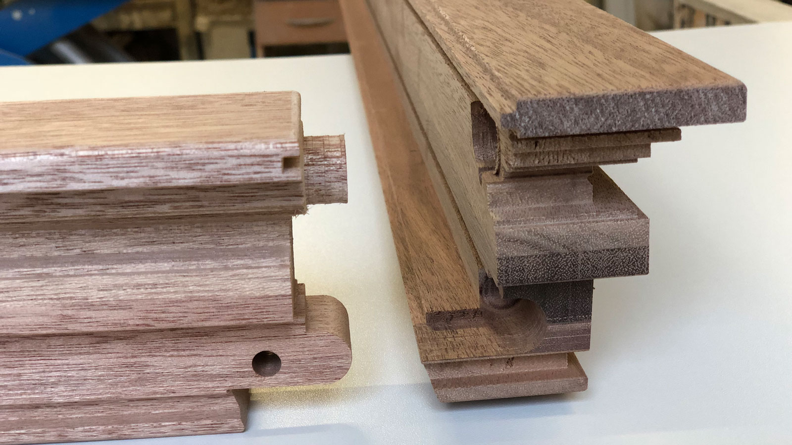 Auf der Suche nach einer neuen Eckverbindung hat Jürgen Diekmann die Alternativen intensiv gecheckt: „Dübeln mit Dübeleintreiben oder spezielle Verbindungselemente haben uns nicht überzeugt.“ Die Kontakte zum Kollegen Prüller in Nassenfels führten ihn zu einer spannenden Entwicklung: Gemeinsam mit dem Werkzeughersteller Zuani hatte der bayerische Fensterbauer eine pfiffige Idee umgesetzt. Für Jürgen Diekmann war dies der Schlüssel: „Die Zuani-Prüller-Eckverbindung mit angefrästen Rund- und Stützzapfen und der perfekten Passgenauigkeit hat uns sofort begeistert. Und das Schöne war: Dieses System hatte sich bereits in der Praxis bewährt und stand komplett zur Verfügung.“ Die Begeisterung hat schlüssige Gründe: Die innovative Eckverbindung ist CNC-gerecht, benötigt nur kleine Werkzeugdurchmesser und kann in nur einer Werkstückaufspannung angefräst werden. Mit gerundeten Zapfen und Langlöchern wird eine präzise, auch im Überschlag kraft- und formschlüssige Eckverbindung mit großer Verleimfläche gewährleistet. Ein weiterer Vorteil ist der vereinfachte Fertigungsablauf. „Durch die selbstzentrierende Konstruktion brauchen wir eigentlich keine Rahmenpresse mehr. Der Rahmenzusammenbau kann durch eine Verschraubung liegend auf Tischen erfolgen.“ Wohlgemerkt: Die Schraube hat keine statische Funktion, sie dient nur der sicheren Fixierung, bis der Leim ausgehärtet ist. Bei Blendrahmen mit außenseitig glatter Fläche verzichtet Diekmann auf die Verschraubung und nutzt die vorhandene Rahmenpresse für die Verleimung. Die Zuani-Prüller-Eckverbindung ist darüber hinaus universell und ermöglicht Sonderkonstruktionen wie z. B. Wechselfalze, angefräste Schlagleisten oder Wetterschenkel. Die neuen Profilschnitte für Holz- und Holz- Alu-Fenster hat Jürgen Diekmann gemeinsam mit den Werkzeug- und Fensterexperten Martin Rauscher und Karl-Heinz Kröger von Zuani Deutschland im schwäbischen Hohenstein entwickelt. Die fertigungstechnische Umsetzung wurde schrittweise im Teamwork mit allen Technologiepartnern realisiert. Auf dem CNC-Bearbeitungszentrum CENTATEQ S-800 sind hochwertige Nadia-Werkzeuge von Zuani im Einsatz, die einen interessanten Vorteil aufweisen: Eine innovative Nanobeschichtung erhöht die Härte der HM-Wendeplatten und sorgt für deutlich längere Standzeiten. Und Diekmann ergänzt: „Mit dem Service sind wir sehr zufrieden. Wir lassen die Werkzeuge dort schärfen, wo wir sie gekauft haben.“
