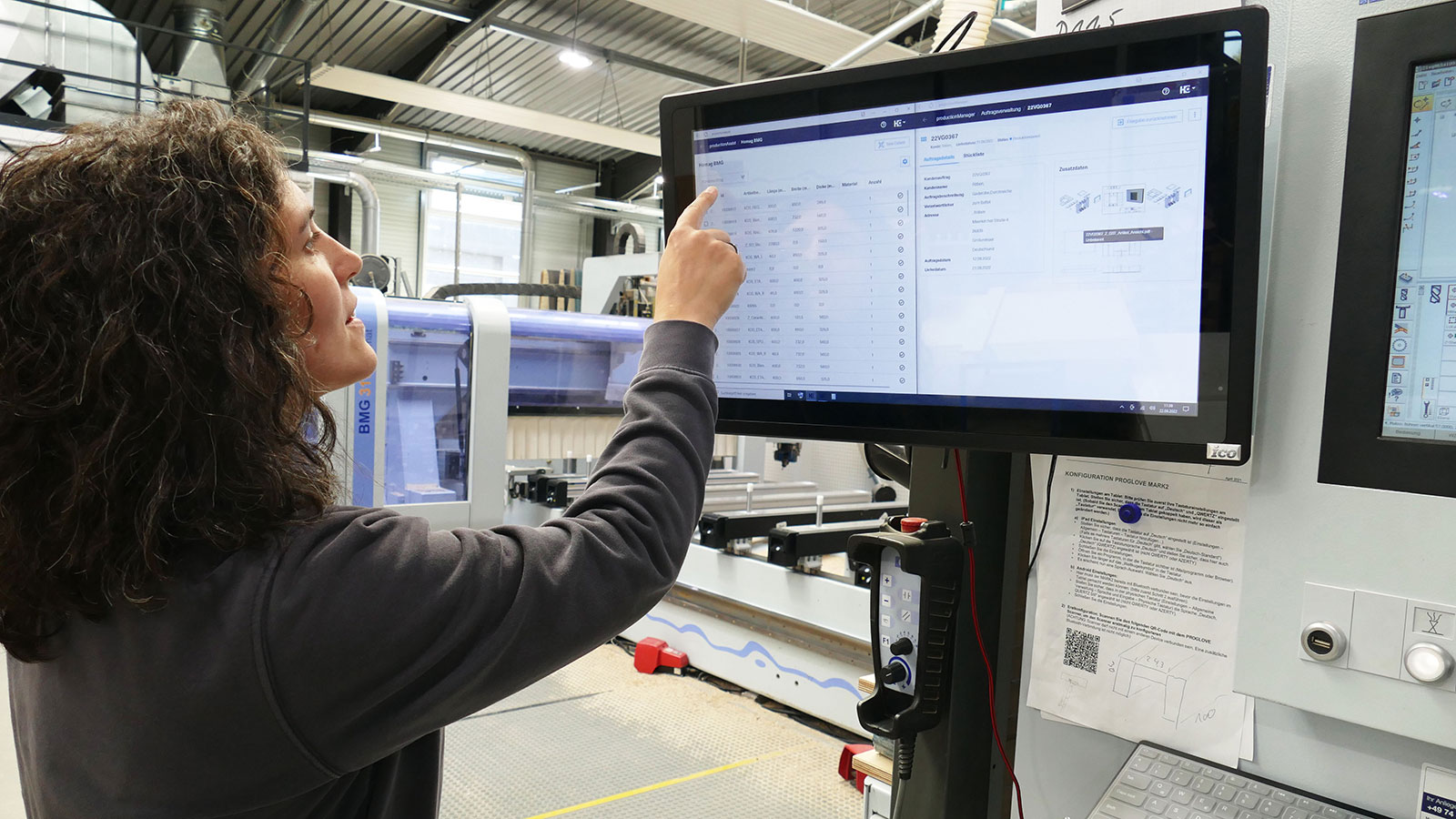 „Die Maschine braucht Input, sie muss von der Arbeitsvorbereitung bis hin zum Fertigungsablauf eingebunden werden. Das muss ohne viel Papier möglich sein, denn Zettelwirtschaft mit Auftragsmappen an den Maschinen und in den Händen verschiedener Mitarbeiter , führt oft zum Chaos.“Manuel zum Buttel, Geschäftsführer und Gründer von ZB Holzsysteme
