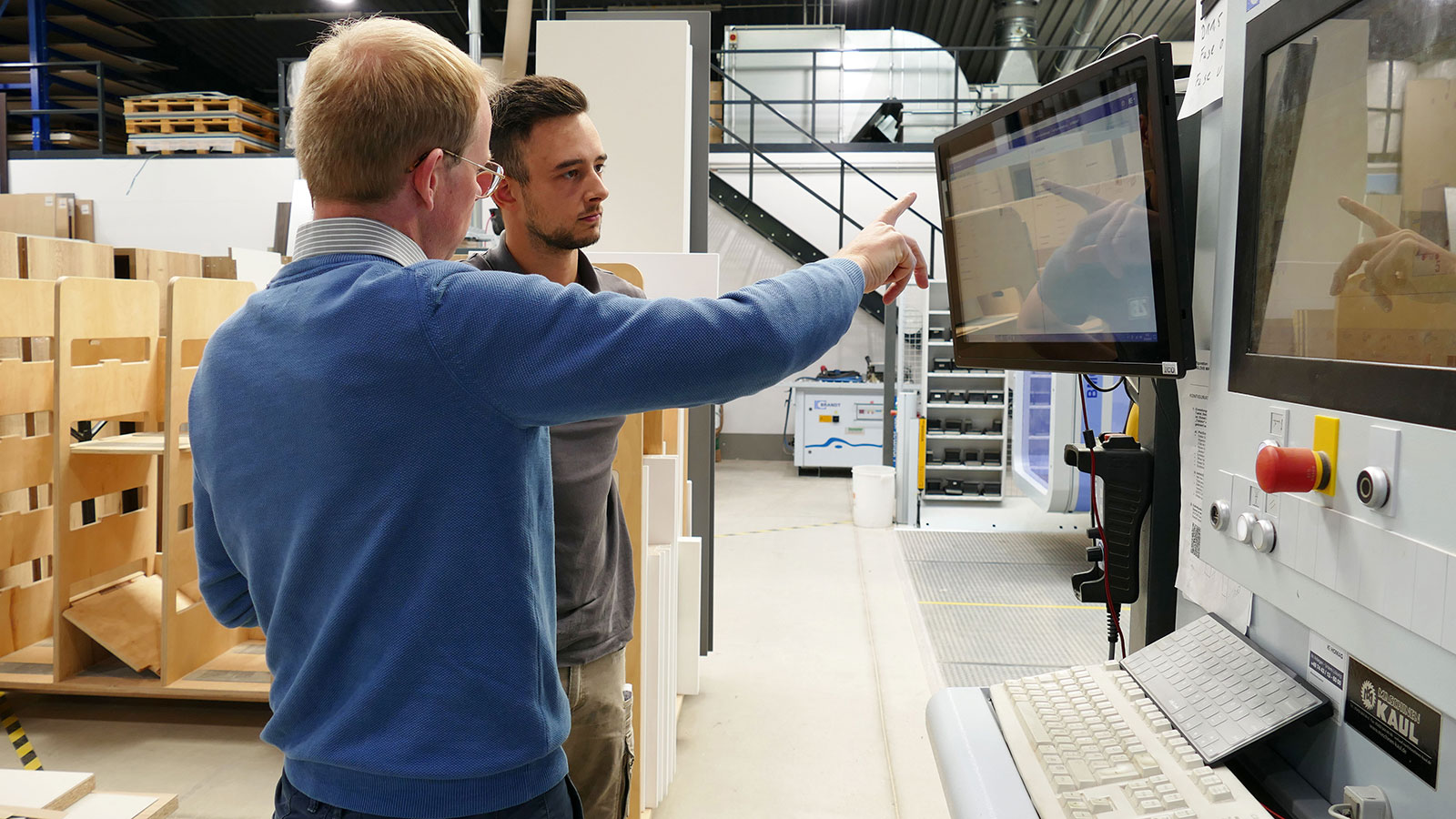 Das Produzieren ohne Daten ist heute kaum mehr vorstellbar. Das weiß auch Manuel zum Buttel, deshalb verwaltet er sein Kantenbandmaterial mit dem Kantenband-Assistenten und seine Produktionsdaten mit dem productionManager. Der Geschäftsführer kommt dem Schritt der digitalen Einfachheit immer näher. Hendrik Albers, Software-Experte bei HOMAG, sieht hier einfache Wege zum Ziel: „Cloud-basierte Lösungen von HOMAG haben den großen Vorteil, dass die digitalen Lösungen und deren Bestandteile einzeln eingesetzt werden können. Jeder Kunde kann das individuelle Modul nutzen, das sein konkretes Problem löst. Wir bieten digitale Lösungen von der Material- und Auftragsverwaltung über die Optimierung, den Zuschnitt bis hin zu digitalen Assistenten für die Produktion und den Service.“