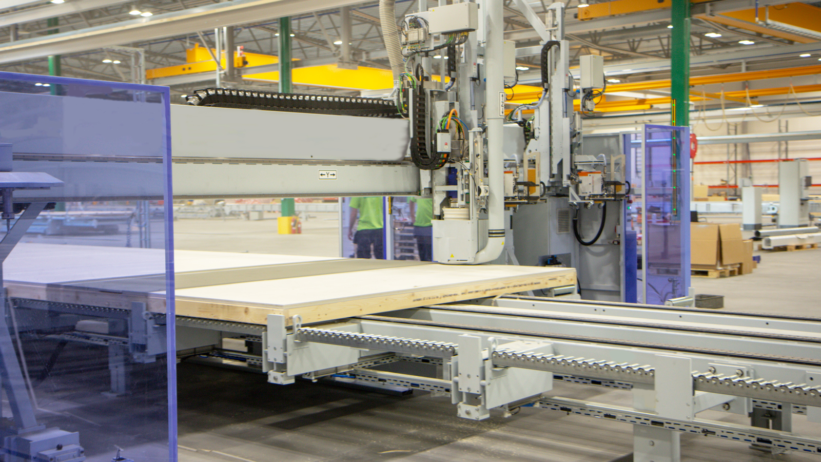 - Automatisiertes Einstellen der Elementbreite an den Bearbeitungstischen von 2 mauf 4,2 m