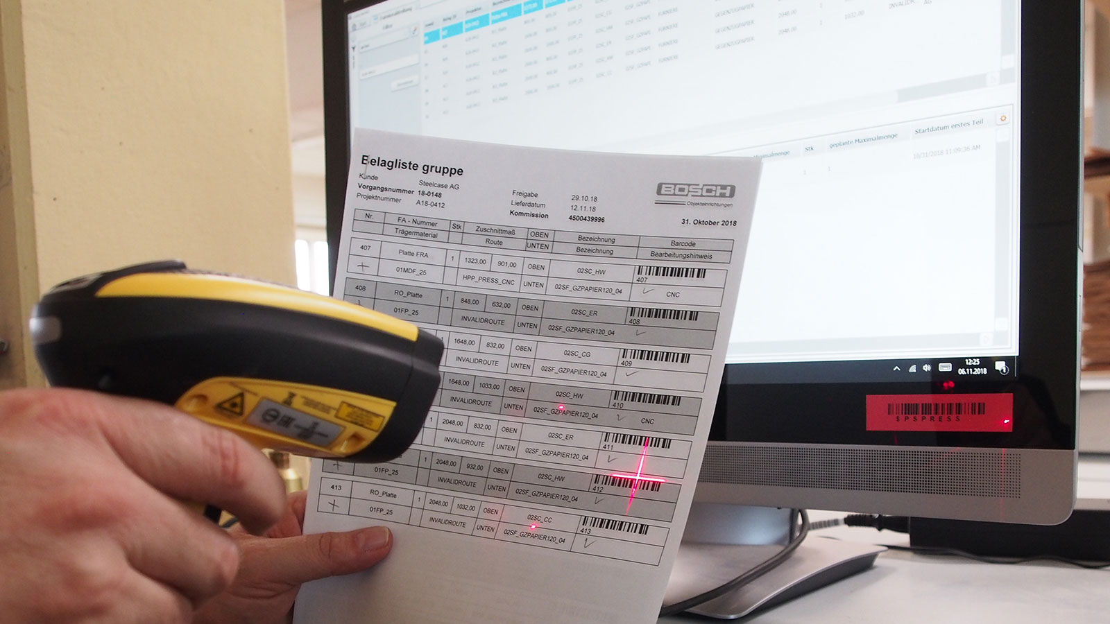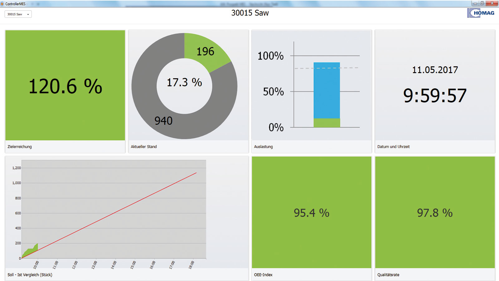 ControllerMES ist das Fertigungsleitsystem der HOMAG Group. Es ermöglicht einen durchgängigen Informationsfluss innerhalb der Fertigung und bietet gleichzeitig die Möglichkeit der hochgradig digitalisierten Produktionsplanung und -organisation. Die Daten werden dabei zunächst in einem ERP- und/oder CAD-System erzeugt, an ControllerMES übergeben und dort für alle weiteren Bearbeitungen bzw. Prozesse intelligent organisiert bzw. aufbereitet. Etiketten mit Barcodes ermöglichen dann die eindeutige Identifikation eines jedes Bauteils – vollkommen egal, wo es sich in der Produktion befindet. Darüber hinaus werden die benötigten Maschinendaten durch das Einlesen des Barcodes an der jeweiligen Maschine (z. B. Zuschnitt, Kantenbearbeitung, CNC) bereitgestellt. Durch die flexible Gruppierung von Aufträgen in der Losbildung und die nahtlose Kommunikation mit der Zuschnittoptimierung Schnitt Profi(t) wird der Verschnitt reduziert. Über den gesamten Produktionsprozess ist der Fortschritt der Aufträge im ControllerMES einsehbar. So ist auf einen Blick sichtbar, ob die einzelnen Komponenten zur Montage bereitstehen oder ausgeliefert werden können. Und sollte ein Teil schnell nach gefertigt werden müssen, unterstützt ControllerMES mit einer entsprechend vorgedachten Logik.