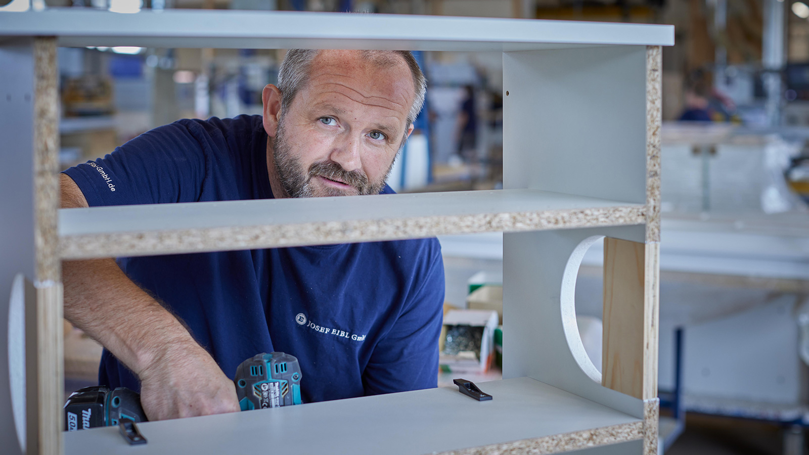 Und Erfinder. Als vor einigen Jahren ein hochkomplexer Ladenbauauftrag ansteht, türmen sich vor Eibl die Herausforderungen auf: Die Räumlichkeiten werden noch anderweitig genutzt, weder Aufmaß noch Arbeitsvorbereitung sind wirklich möglich. Zudem ist das Zeitfenster mehr als knapp. Seine Lösung: Komplettfertigung in der Schreinerei, im Laden hängen seine Leute die Einzelteile dann einfach mit Schienen an die Wand. Das einzige Problem dabei: Es gibt keine passende Schiene auf dem Markt. Doch davon lässt sich der Schreinermeister nicht aufhalten. Er nutzt einen zufälligen Kontakt zu einem Aluminiumwerk, tüftelt Tag und Nacht an der perfekten Form, lässt die passenden Werkzeuge herstellen und akzeptiert die drei Tonnen Mindestabnahme. Fertig ist das patentierte Montagesystem EILOX, das neben Varicor® und Schreinerei eines der drei Eibl-Standbeine ist.