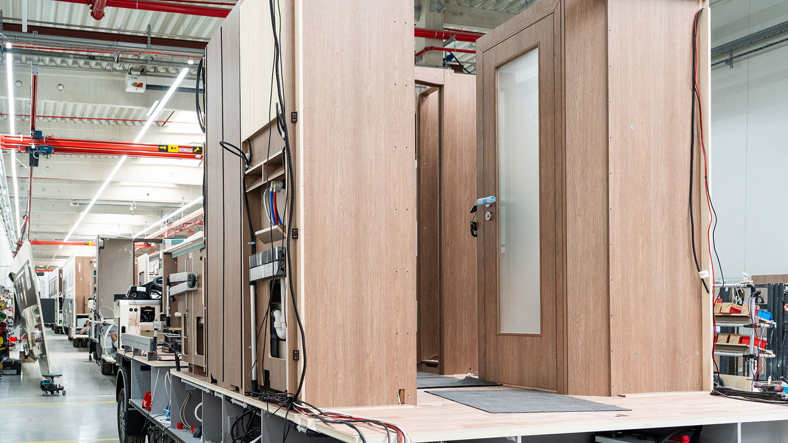 MORELO ist ein Hersteller, der in Baukästen denkt und in diesem Rahmen individuelle Kundenwünsche erfüllt. Von den sieben gebauten Modellen hat jedes bis zu zehn Grundrisse, hinzu kommen diverse Sonderbauoptionen. „Gefertigt wird bewusst in einem Mix dieser Modelle. Und das auftragsbezogen in Losgröße 1, wobei die Fahrzeuge eine getaktete Fertigung durchlaufen“, schildert Produktionsleiter Tobias Jäger.