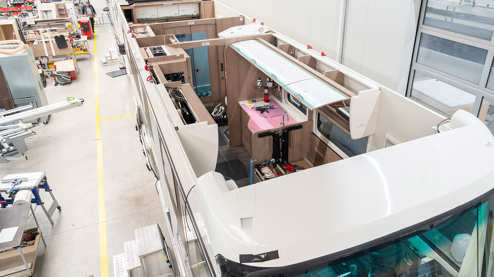 Damit steht dem Reisemobilhersteller eine Anlage zur Verfügung, die – basierend auf der nötigen Prozessqualität und -sicherheit – die Steigerung der Stückzahlen samt Ressourcenoptimierung garantiert. Freilich werden Prozesse wie die Logistik oder Softwareanwendungen weiter optimiert. Darüber hinaus könnte an Stellschrauben wie dem Durchsatz-Verschnitt-Verhältnis, der konstruktiven Ausrichtung der Teile oder dem Schichtmodell gedreht werden. Es ist also reichlich Potenzial vorhanden, das sich noch heben lässt. Dazu gehört auch, outgesourcte Fertigungsleistungen ins Haus zurückzuholen.