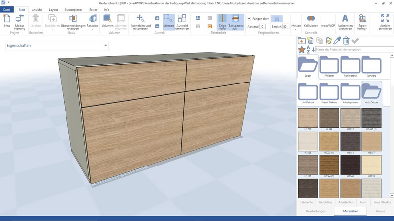 Tritt der Fall ein, dass beispielsweise Fronten eines Möbelstücks ein zusammenhängendes Furnierbild erhalten sollen, müssen diese bei der Optimierung im Schnittplan nebeneinander liegen.